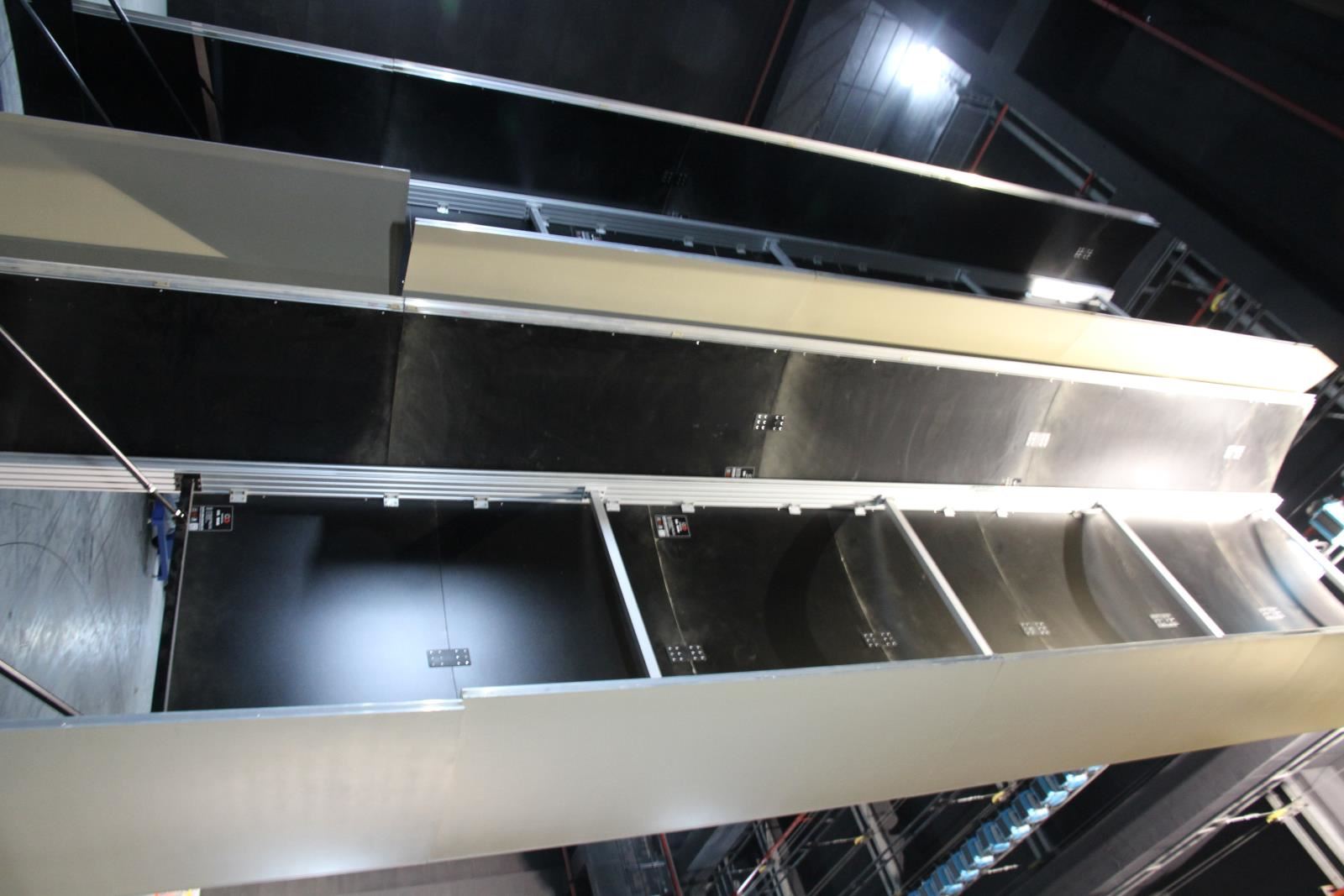 3. 設(shè)有專用儲存和運(yùn)輸設(shè)備,使反聲罩在舞臺上移動自如。所有的拆、裝工作由手動和機(jī)械相結(jié)合。